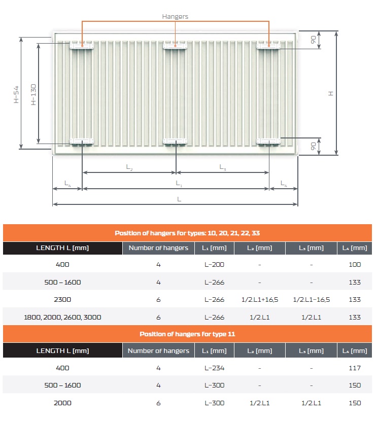 Models with this designation are suitable for areas with increased hygiene requirements. Thesa are Kompakt radiators without additional transfer area (convector), that type series 10 and 20. Type 20 is normally produced with a width of 65 mm. If required by the customer’s needs, it is possible to produce type 20 with a width of 100 mm. These radiators are then referred 20W. Hygienic radiators can also be supplied in the PLAN version, ie with a smooth front surface.