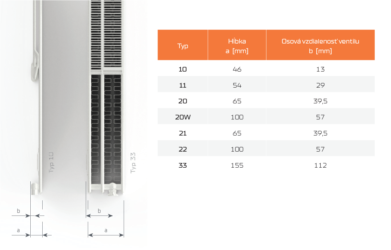 Models with this designation are suitable for areas with increased hygiene requirements. These are Radiators Ventil Kompakt with a bottom central connection VKM without an additional transition surface (convector), ie type series 10 and 20. Type 20 is standardly produced with a width of 65 mm. If required by the customer’s needs, it is possible to produce type 20 with a width of 100 mm. Such radiators are then referred to as 20W. Hygienic radiators can also be supplied in the PLAN version, ie with a smooth front surface.