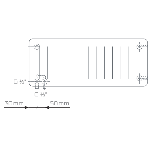 Height H 300, 400, 500, 600, 900 mm Length L from 400 up to 3000 mm, incr. 100mm Connecting pitch h = 50mm Thread 6 x G 1/2″ inner - Heating outputsWordPress Tables