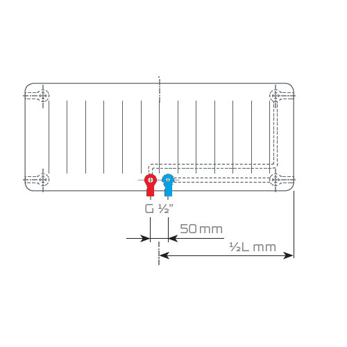 Height H 300, 400, 500, 600, 900 mm Length L 400 až 2000 mm, incr. 100mm Connecting pitch h = 50mm Thread 6 x G 1/2″ inner - Heating outputsWordPress Tables