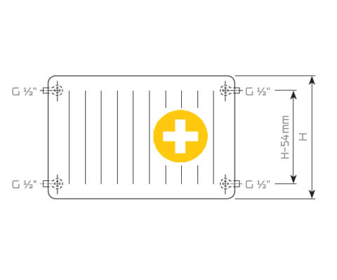 Výšky H 300, 400, 500, 600, 900 mm Dĺžky L 400 až 2000 mm, s krokom 100mm Pripojovací rozstup h = H -54mm Pripojovací závit 4 x G 1/2″ vnútorný - Layer composition