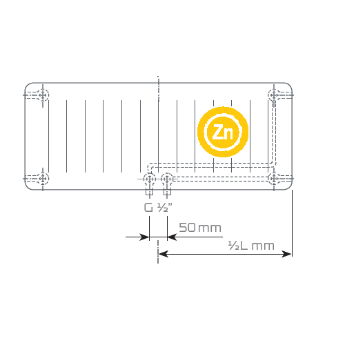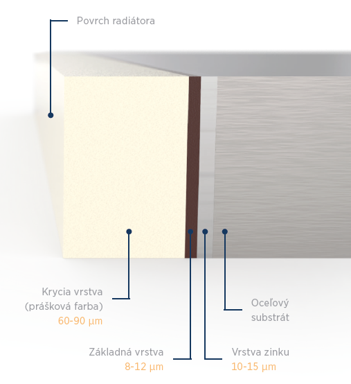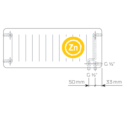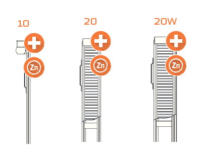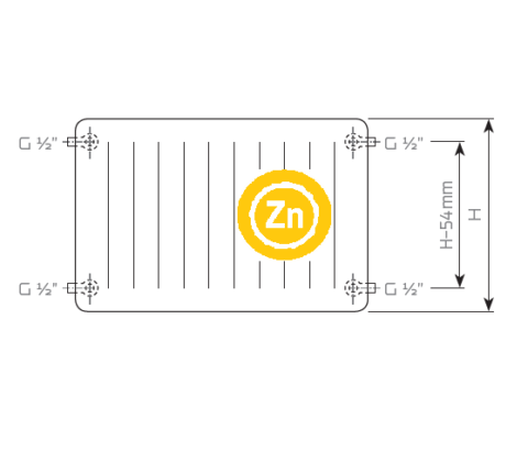 Until now, the use of steel panel radiators has been limited to rooms with a low relative humidity of 30 to 60%. By changing the surface finish, it is now possible to use these radiators in humid environments such as toilets, swimming pools, relaxation and wellness centers. At first glance, the galvanized radiator is indistinguishable from a conventional radiator. But the difference is big. A layer of zinc is electrolytically applied to the cleaned and degreased surface of the manufactured radiator. This layer forms the basis of protecting the radiator from corrosive environments. The zinc layer is then applied to the same surface treatment as for conventional production. The result is a radiator in the shade RAL 9016. In order for the corrosion protection of the products to be perfect, the range of galvanized radiators is limited to types without convector plates. The maximum length of the galvanized radiator is 2000 mm.