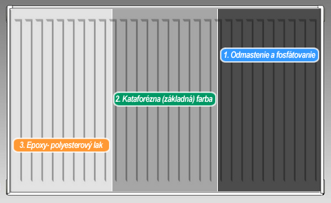 Two-layer anophoretic painting of radiators was introduced in 1990 with the purchase of the EISENMANN automatic painting line, which was modernized in 2002 to a cataphoretic system for applying the basic layer.